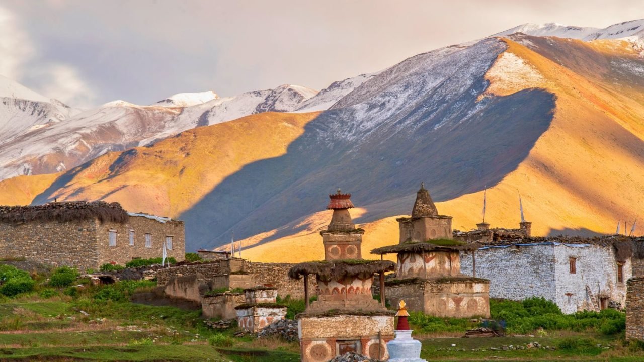 今日のトレッキングは、西のイスワ・コーラと東のカシュワ・コーラに挟まれた尾根を登るため、比較的簡単です。トレイルは丘の中腹を横切り、様々な村を通り抜けます。約5時間の安定した上昇の後、活気のあるタシガオン村に到着し、そこで夜のキャンプを設営します。