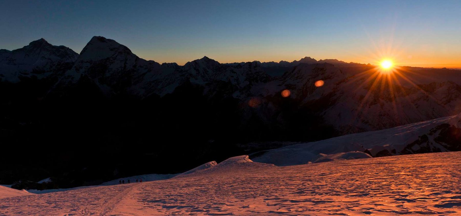 登頂の日が来ました!正午前にメラ・ピークの頂上に到達するため、早朝に出発します。午後は強風が課題となる可能性があるためです。プロの登山ガイドの指導の下、必要なすべての登山装備を携行し、できるだけ快適に登頂できるよう彼らのリードに従います。メラ・ハイキャンプから山頂までの登りは通常約5~6時間かかります。頂上に到達すると、アマ・ダブラム、ヌプツェ、エベレスト、マカルー、ローツェ、チョー・オユー、カンチェンジュンガなど、象徴的な山々の息をのむような景色がご褒美となります。この壮大な景色を満喫した後、カレへと下山を開始し、爽快な一日を終えた後、地元のティーハウスの温かい快適さの中で達成を祝い、くつろぐことができます。