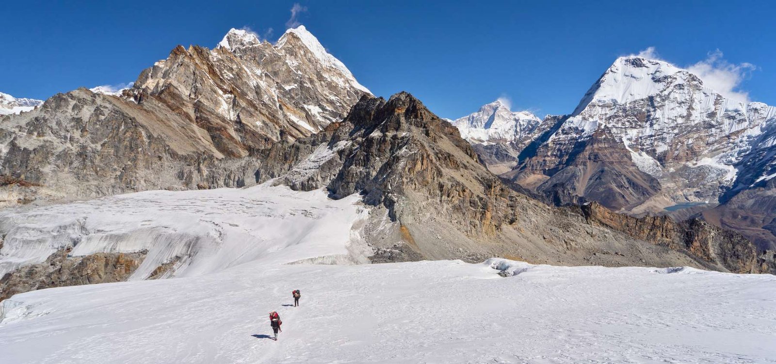 この日の冒険の最後の区間を乗り越えると、急な道がカレの素晴らしい展望台へと導きます。そこでは、クサム・カンガル、キャシャール、メラ・ピークの北壁を含む周囲のヒマラヤ山塊の壮大な景色を堪能でき、次の登りに備えるための息をのむような背景となります。