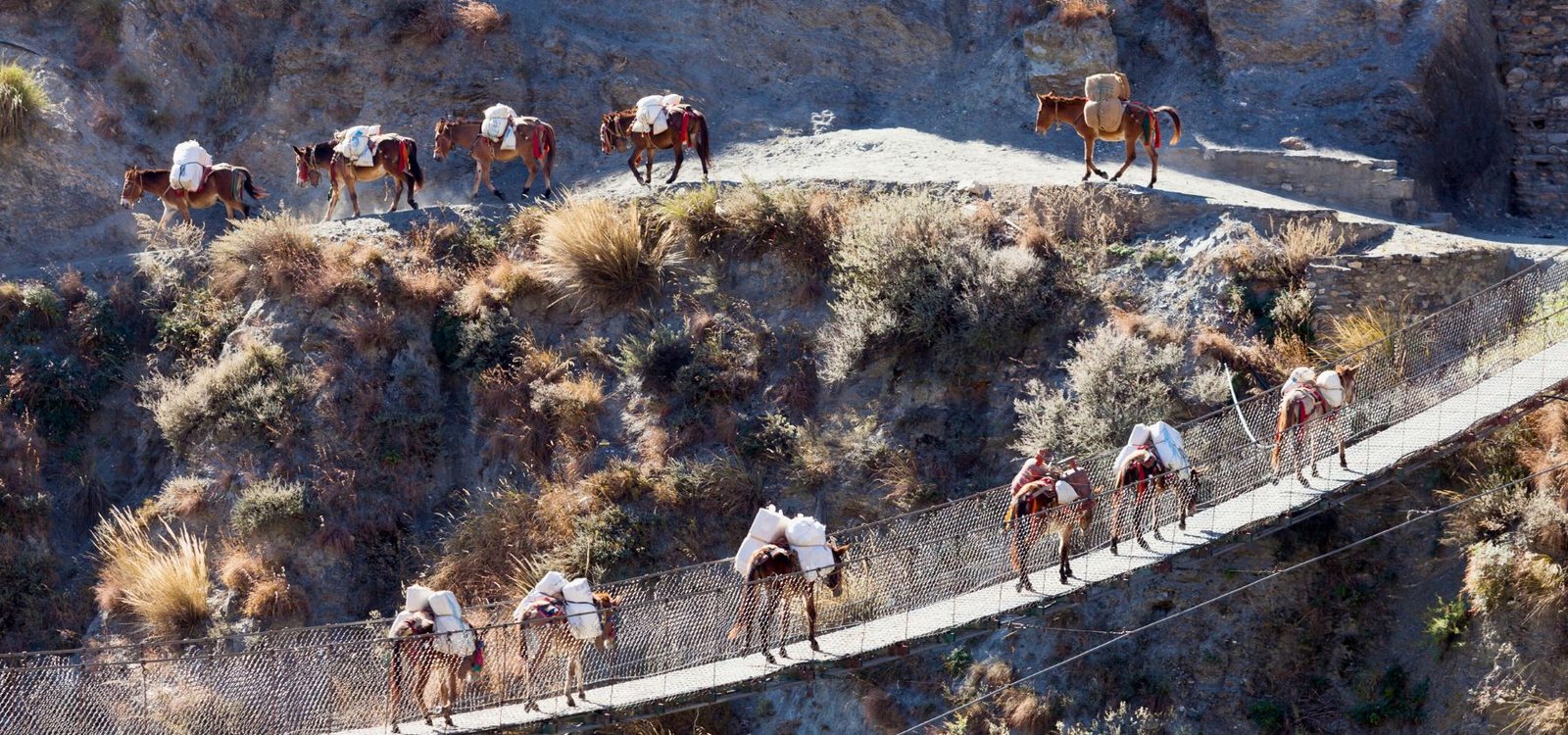 地形は非常に多様で挑戦的であり、急な上り坂、岩だらけの道、川の横断などがあり、優れたトレッキングスキルと適応性が必要です。